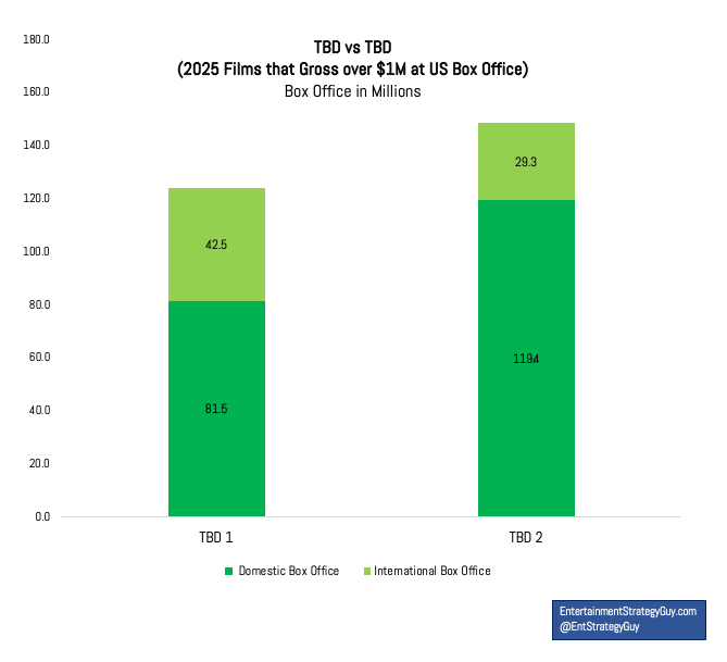 As I noted in my last visual of the week, often in the day-in and day-out of the streaming wars, we don’t update stories that made headlines in previous months or years. If a movie studio or production company has a breakout hit or a big flop, everyone notices and that dominates the conversation for a week or, more often, a day. Like Blumhouse’s recent disappointment, M3GAN 2.0. Or Angel Studios' surprise hit King of Kings.