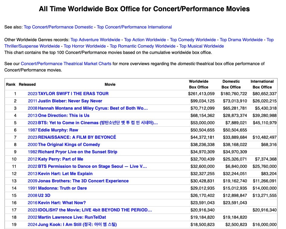 No. Later that year, Beyoncé’s concert film did a multiple less revenue than Taylor Swift: The Eras Tour, only $34 million in the US and $44 million globally. And Beyoncé is arguably the second biggest pop star in America! By the next year, Olivia Rodrigo’s concert film didn’t even chart on Netflix. We haven’t really seen a concert film since then...