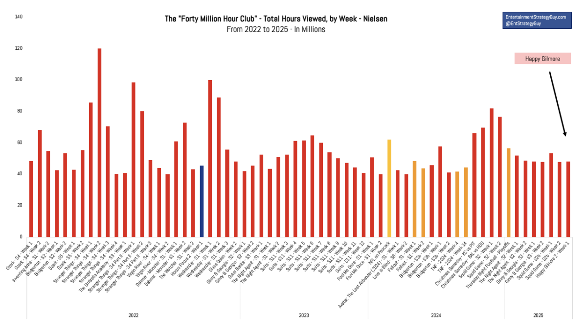 Since it bested the 40 million mark, that means, by default, it landed in the film “30 million hour” club, the slightly lower bar for elite performance on streaming for films: